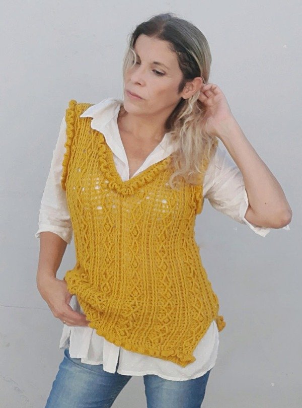 En este PDF vas a encontrar todas las indicciones para poder realizar este chaleco en todos los talles y con el material que mas te guste.
