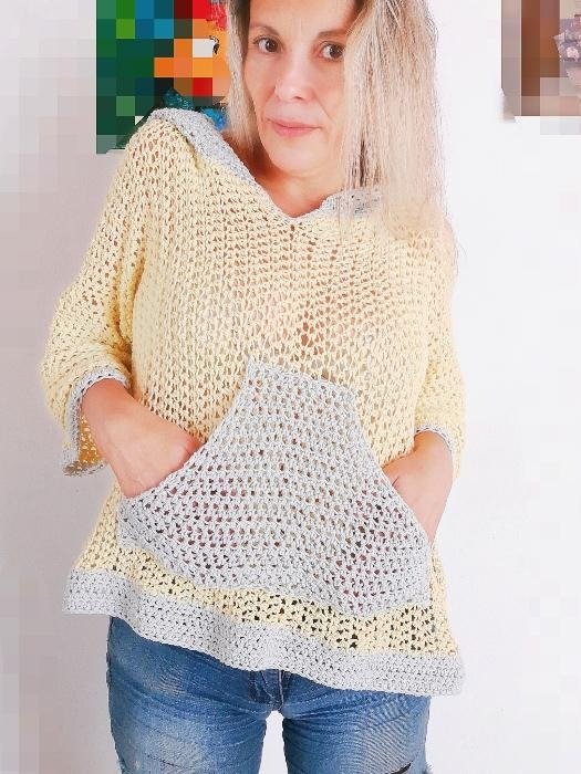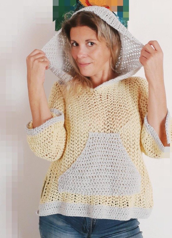 Solo se agrega el bolsillo de canguro en el caso de que te guste así.