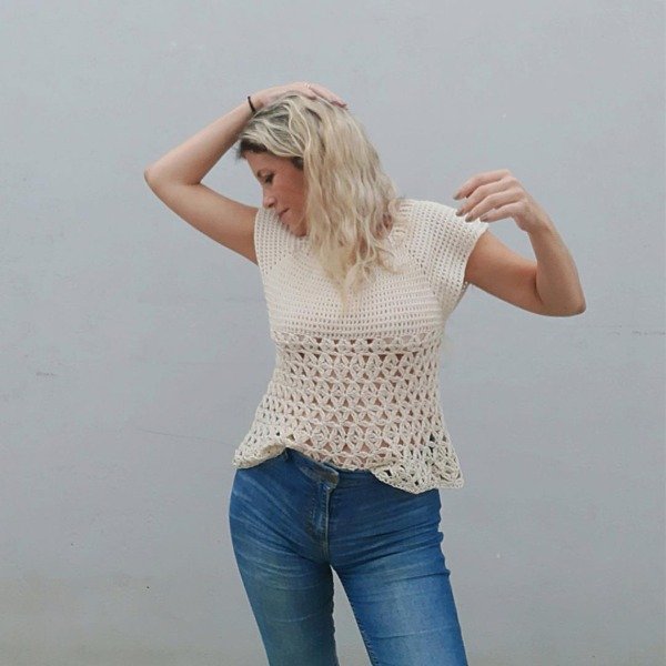 Este Top es una prenda muy linda con estructura de canesú tejido en estructura circular con base cuadrada.