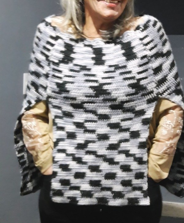 Quería tejer una prenda linda, original, distinta a lo que tenia y pensando y probando, probando y pensando salió la Capa Mimosa